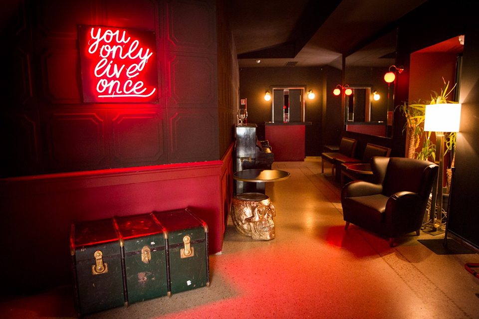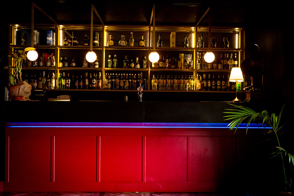Locale cocktail bar nei pressi di piazza Cavour a Roma, colori scuri e luci soffuse, sulla falsa riga di speakeasy anni 30.